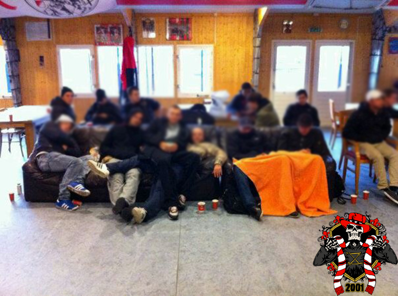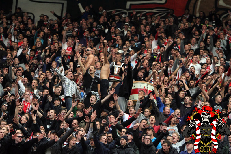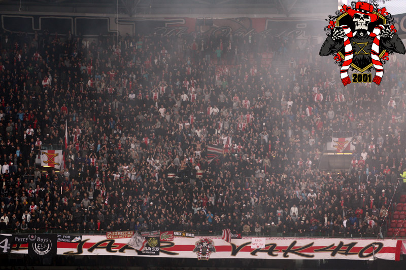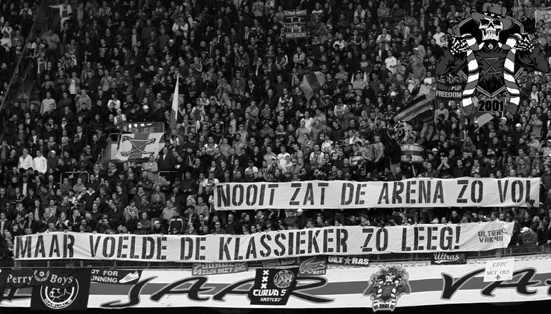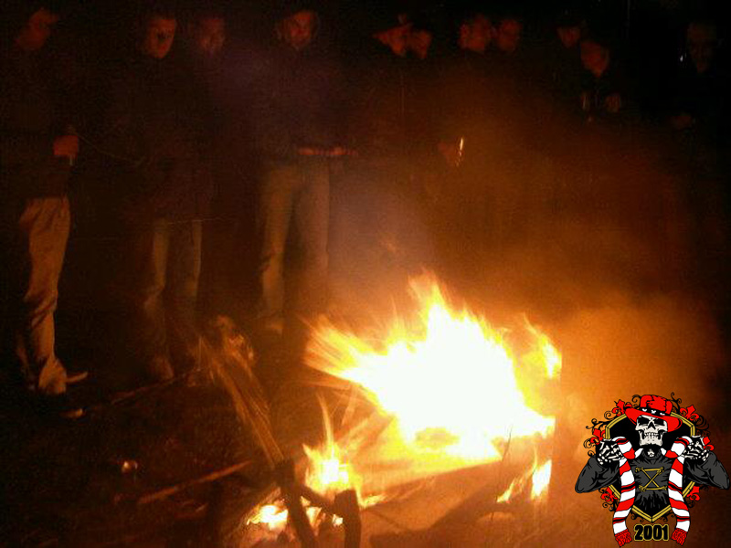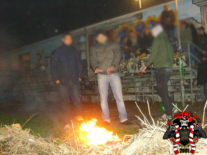 Jaarlijks vinden er rondom de Klassieker vaste rituelen plaats: bezoek aan de laatste training en de nacht ‘voor’. Dit jaar is op aangeven van Frank de Boer de laatste training besloten afgewerkt, dus dat ritueel ging niet door. Vroeg in de avond werd er door een groep bij het honk verzameld, van alle kanten wordt er drank en eten aangereikt. Aangezien de tempraturen ’s nachts weer tegen het vriespunt liggen wordt er een vuurtje opgestookt. De smeris komt ook nog even kijken, 8 busjes sterk. Als gauw zagen ze dat het om een groep Ajax ging, in tegenstelling tot hun eerdere gedachte naar een groep van de andere club.