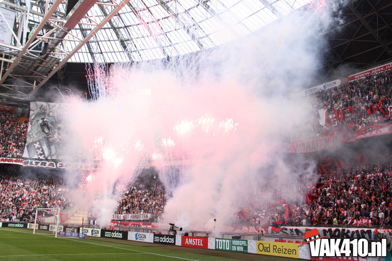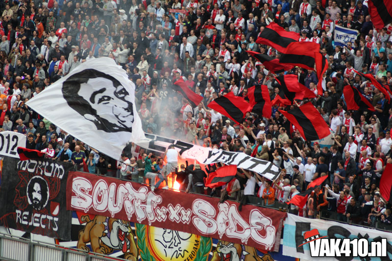 De magie van het doek werd overgebracht naar het veld en de Amsterdamse Zuid tribune. De Mokumse leeuw kwam in een ieder naar boven. De tribunes klokte, het stadion was 1. Er kon op de tribune en het veld dan ook niet meer verloren worden.
